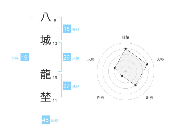 八城 龍埜さんの天格は18画の4点!