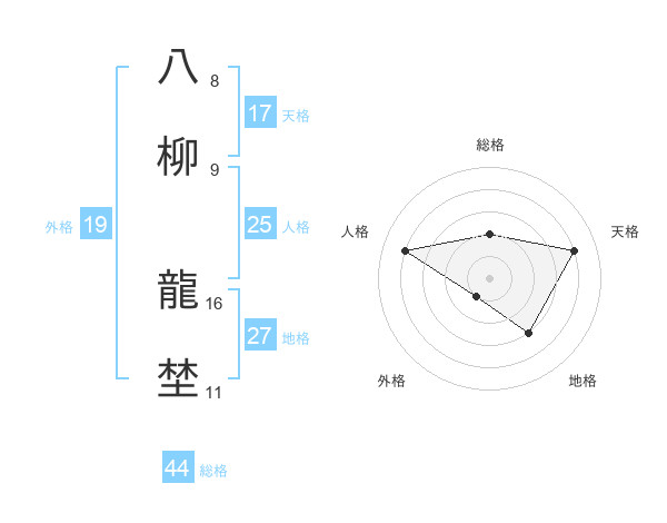 八柳 龍埜さんの天格は17画の4点!