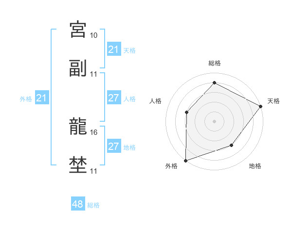 宮副 龍埜さんの外格は21画の5点!