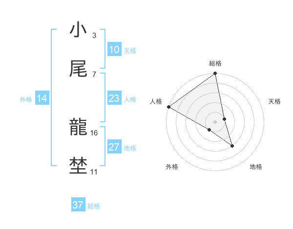 小尾 龍埜さんの総格は37画の5点!