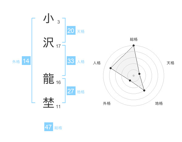 小沢 龍埜さんを姓名の画数から五運を鑑定