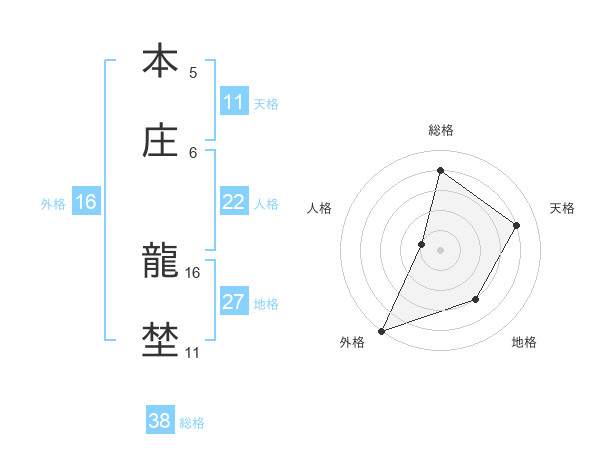 本庄 龍埜さんの総格は38画の4点!