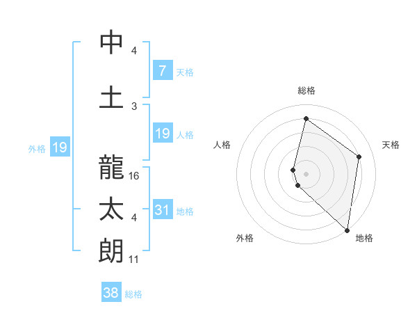 中土 龍太朗さんを姓名の画数から五運を鑑定