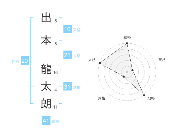 出本 龍太朗さんを姓名の画数から五運を鑑定