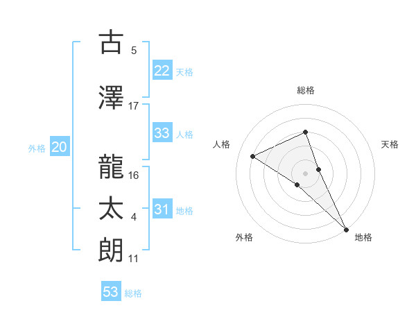 古澤 龍太朗さんを姓名の画数から五運を鑑定