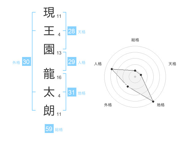 現王園 龍太朗さんを姓名の画数から五運を鑑定