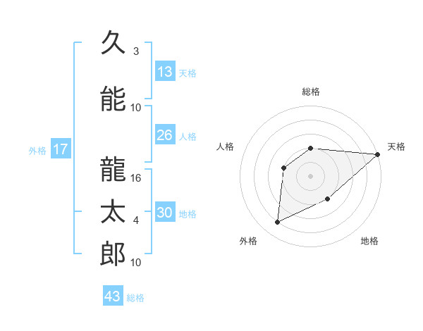 久能 龍太郎さんを姓名の画数から五運を鑑定