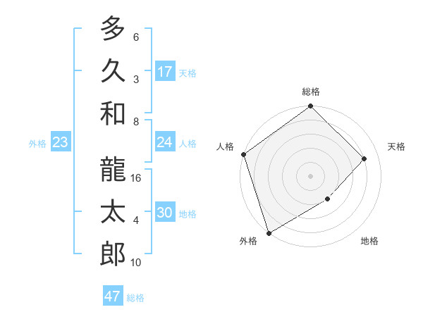 多久和 龍太郎さんを姓名の画数から五運を鑑定