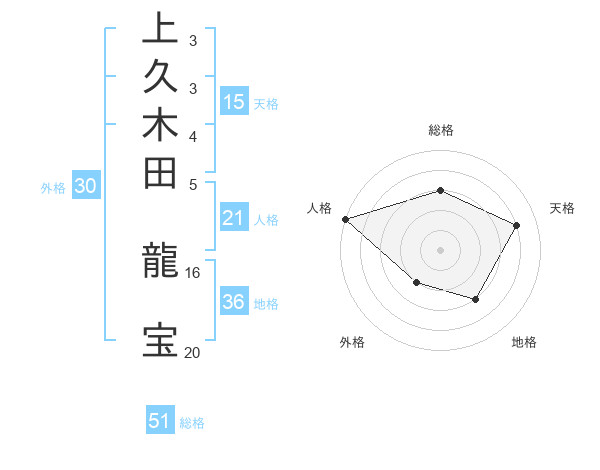 上久木田 龍宝さんの総格は51画の3点!