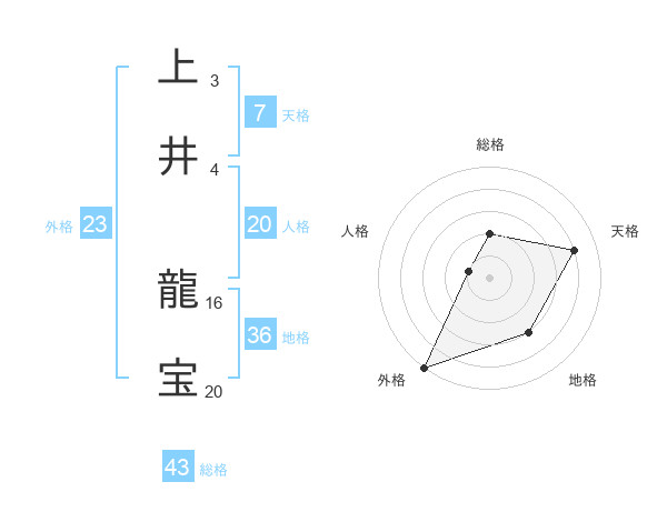 上井 龍宝さんを姓名の画数から五運を鑑定