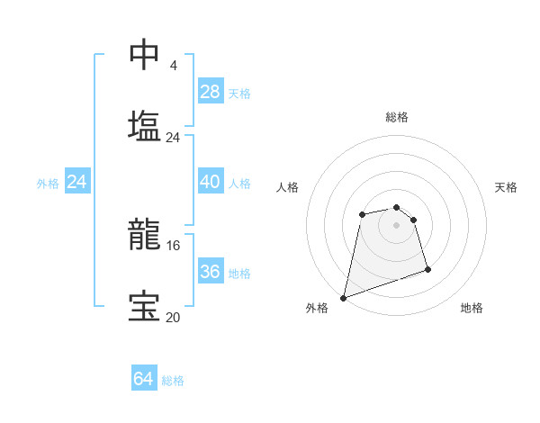 中塩 龍宝さんの総格は64画の1点!