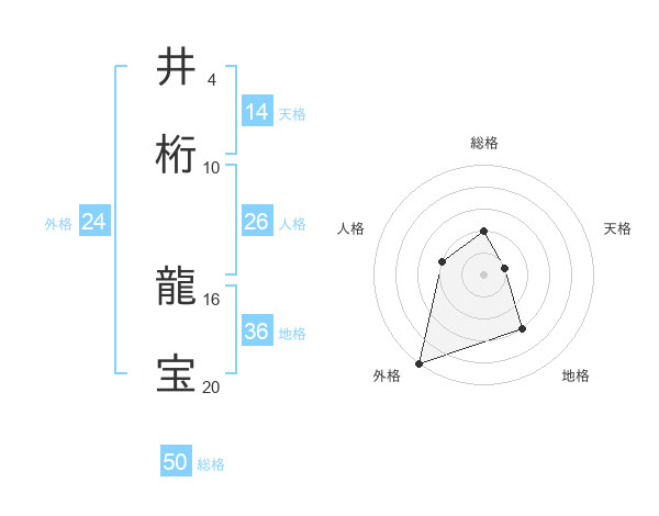 井桁 龍宝さんの総格は50画の2点!