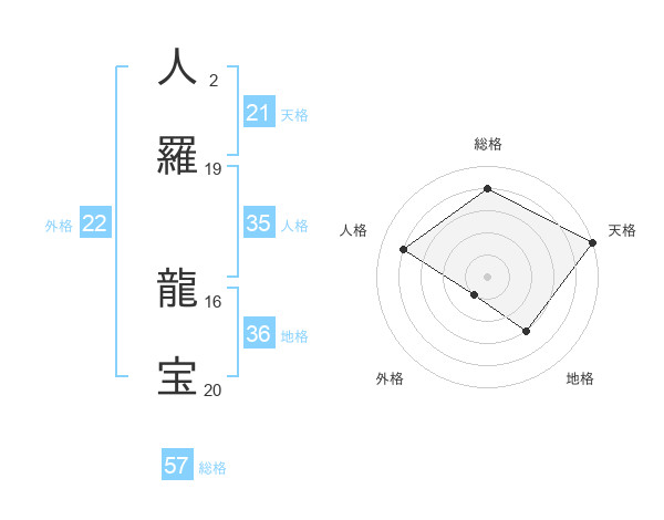人羅 龍宝さんを姓名の画数から五運を鑑定