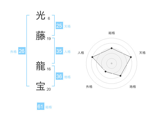 光藤 龍宝さんの総格は61画の3点!