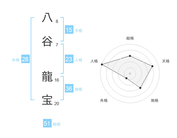 八谷 龍宝さんの総格は51画の3点!