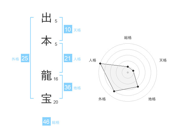 出本 龍宝さんの外格は25画の4点!