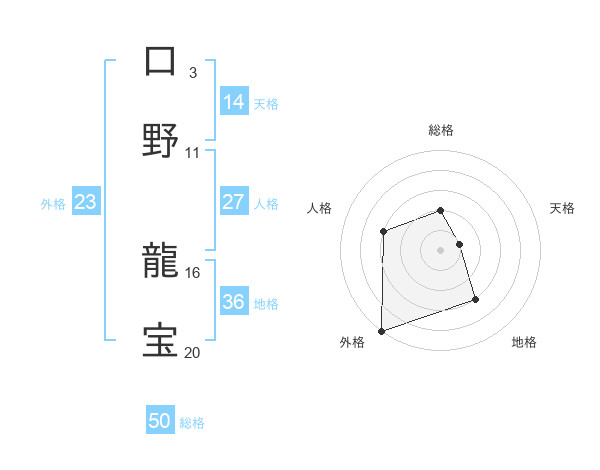 口野 龍宝さんを姓名の画数から五運を鑑定