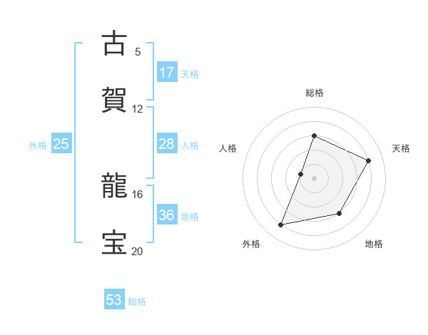 古賀 龍宝さんを姓名の画数から五運を鑑定