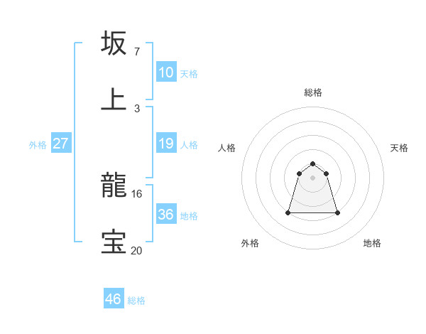 坂上 龍宝さんの総格は46画の1点!
