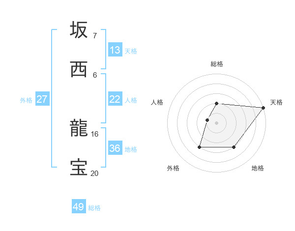 坂西 龍宝さんの天格は13画の5点!