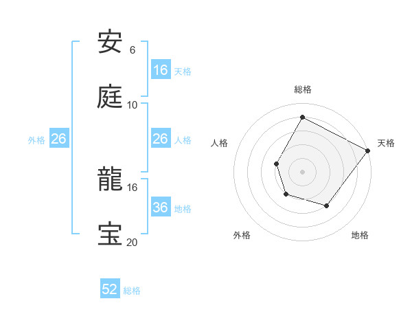 安庭 龍宝さんを姓名の画数から五運を鑑定