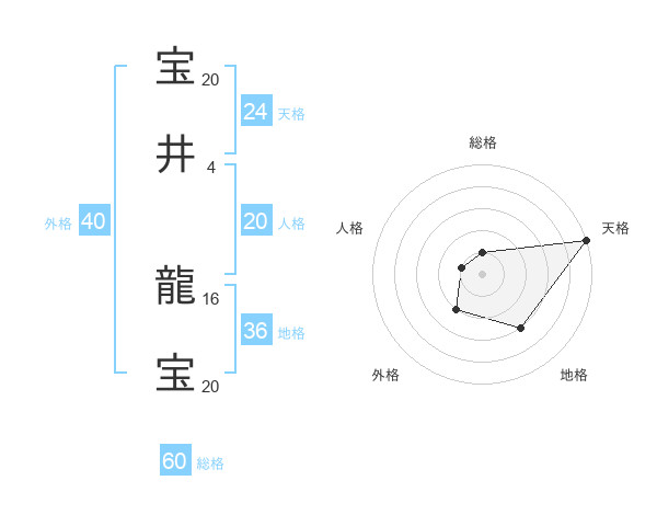 宝井 龍宝さんの総格は60画の1点!