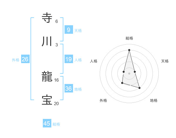 寺川 龍宝さんの総格は45画の4点!