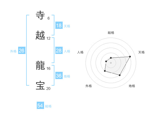 寺越 龍宝さんの天格は18画の4点!