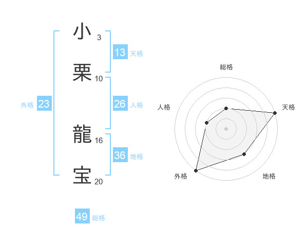 小栗 龍宝さんを姓名の画数から五運を鑑定