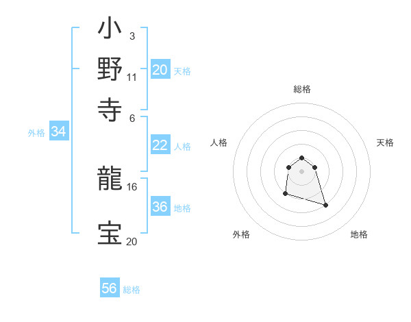 小野寺 龍宝さんを姓名の画数から五運を鑑定