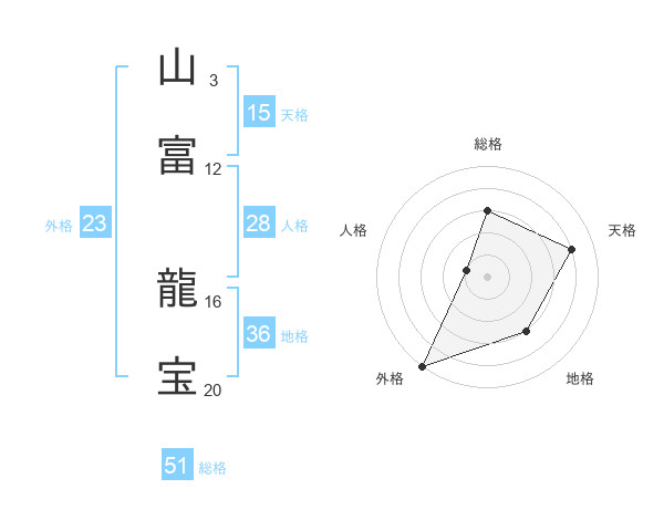 山富 龍宝さんを姓名の画数から五運を鑑定