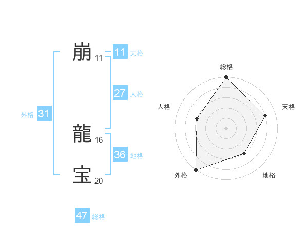 崩 龍宝さんを姓名の画数から五運を鑑定