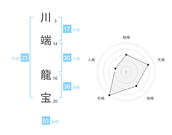 川端 龍宝さんの総格は53画の3点!