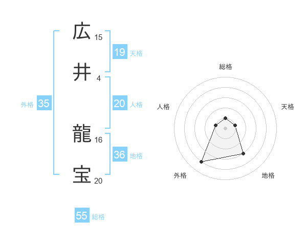 広井 龍宝さんの総格は55画の1点!