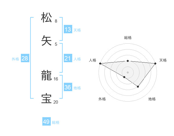 松矢 龍宝さんを姓名の画数から五運を鑑定