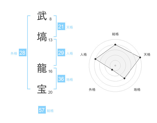 武塙 龍宝さんを姓名の画数から五運を鑑定