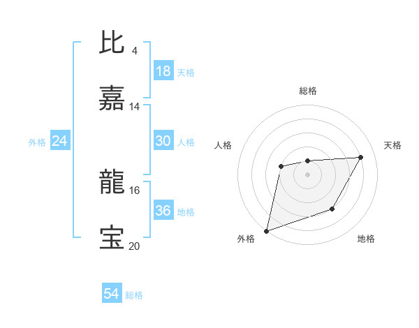 比嘉 龍宝さんの総格は54画の1点!