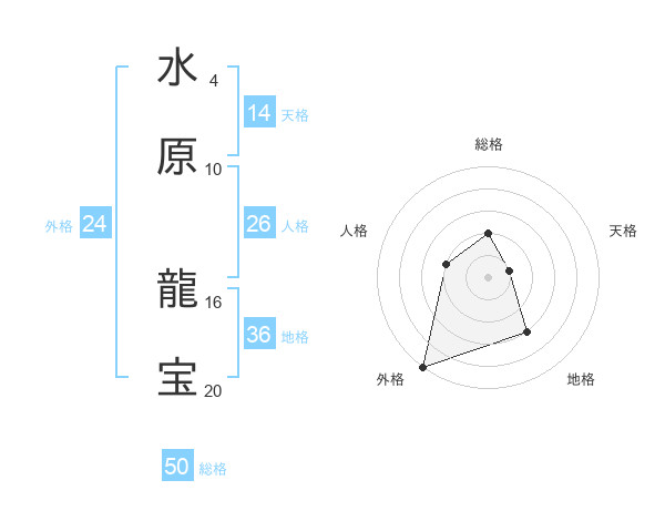 水原 龍宝さんを姓名の画数から五運を鑑定