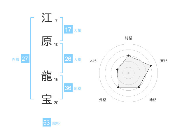 江原 龍宝さんの総格は53画の3点!