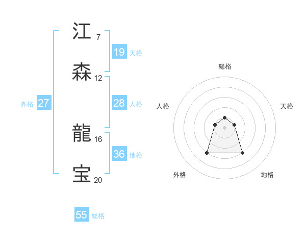 江森 龍宝さんを姓名の画数から五運を鑑定