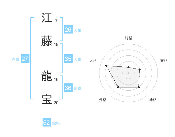 江藤 龍宝さんの総格は62画の1点!