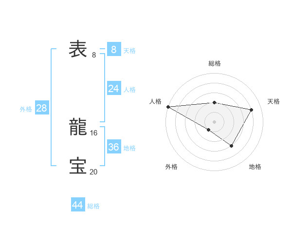 表 龍宝さんの総格は44画の2点!