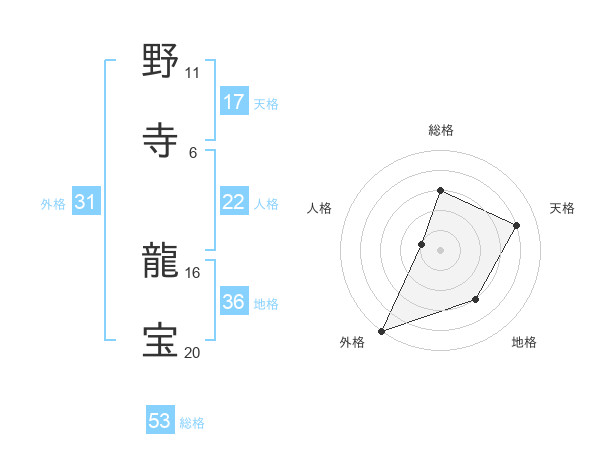 野寺 龍宝さんの外格は31画の5点!