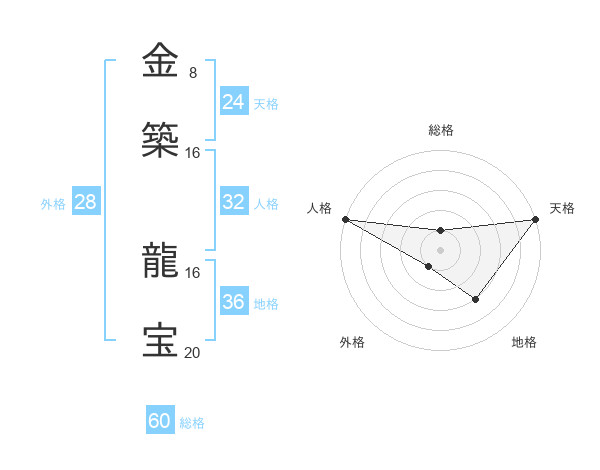 金築 龍宝さんの天格は24画の5点!