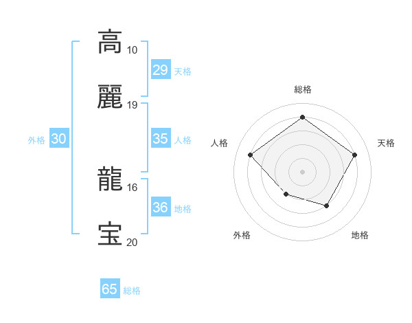 高麗 龍宝さんの総格は65画の4点!