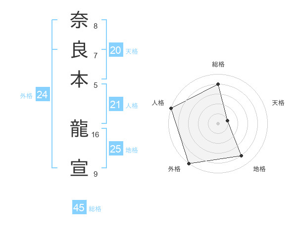 奈良本 龍宣さんの総格は45画の4点!