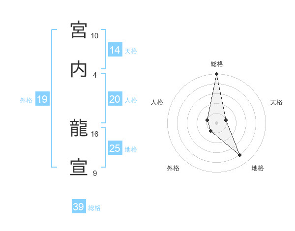 宮内 龍宣さんを姓名の画数から五運を鑑定