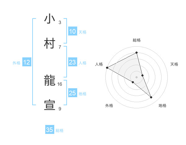 小村 龍宣さんの総格は35画の4点!