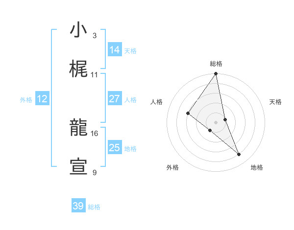 小梶 龍宣さんを姓名の画数から五運を鑑定