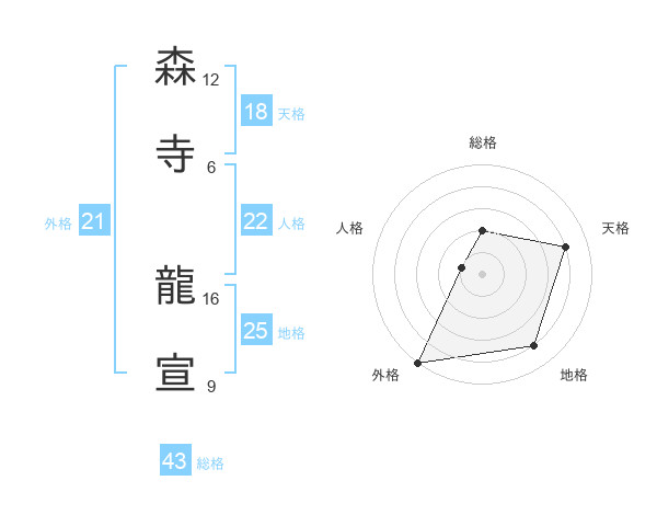 森寺 龍宣さんの外格は21画の5点!